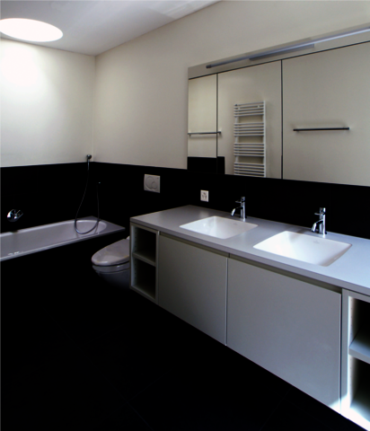 Geplant sind drei Wohneinheiten mit 5.5 Zimmern und Nebenräumen auf einer Ebene und eine exklusive 6.5 Zimmer-Maisonette-Attikawohnung, die bei Bedarf in zwei Wohnungen unterteilt werden kann. Alle Wohnungen werden von einem externen Vertikallift erschlossen. Massgebend für den Ausdruck sind die den Wohnungen vorgelagerten Betongerippe, welche die grosszügigen Terrassenbereiche gliedern, möblieren und auch im Sommer ein angenehmes Raumklima gewährleisten. Der in Beton erstellte Massivbau wird teilweise mit behandelten Holzplatten verkleidet und erhält dadurch partiell eine Veredelung. Das Innere ist gekennzeichnet durch eine gewisse räumliche Flexibilität und durch einen hohen Ausbaustandard, der Komponenten wie kontrollierte Wohnungslüftung, Hausstaubsauger, Chemineéofen sowie grosszügige Materialbudgets beinhaltet.