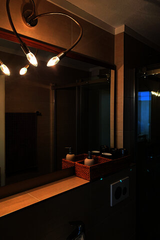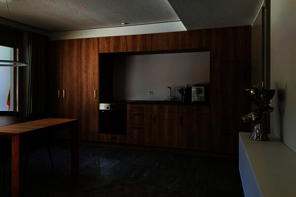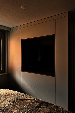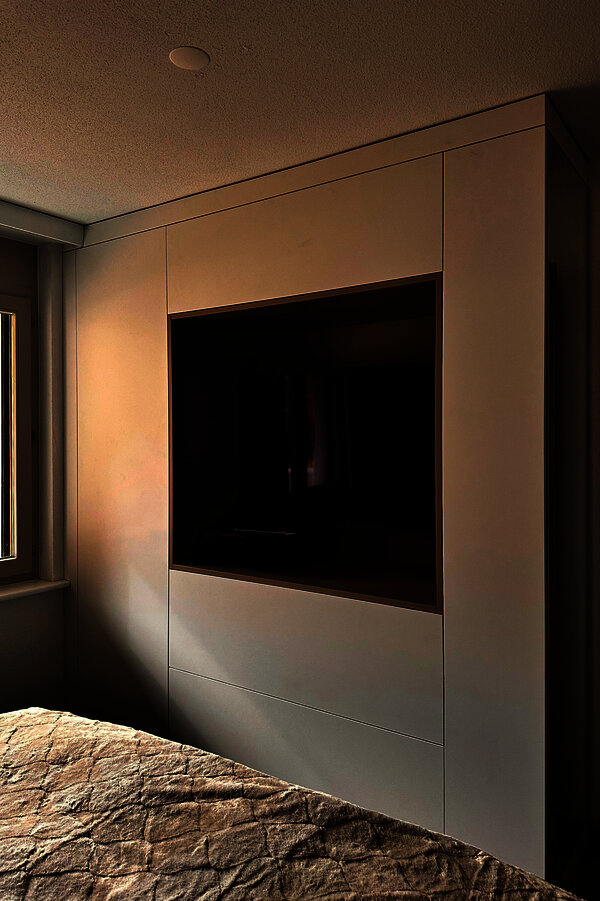 Das Elektrokonzept und die Integration des Fernsehers in einen bestehenden Einbauschrank komplettieren die Modernisierung.