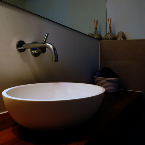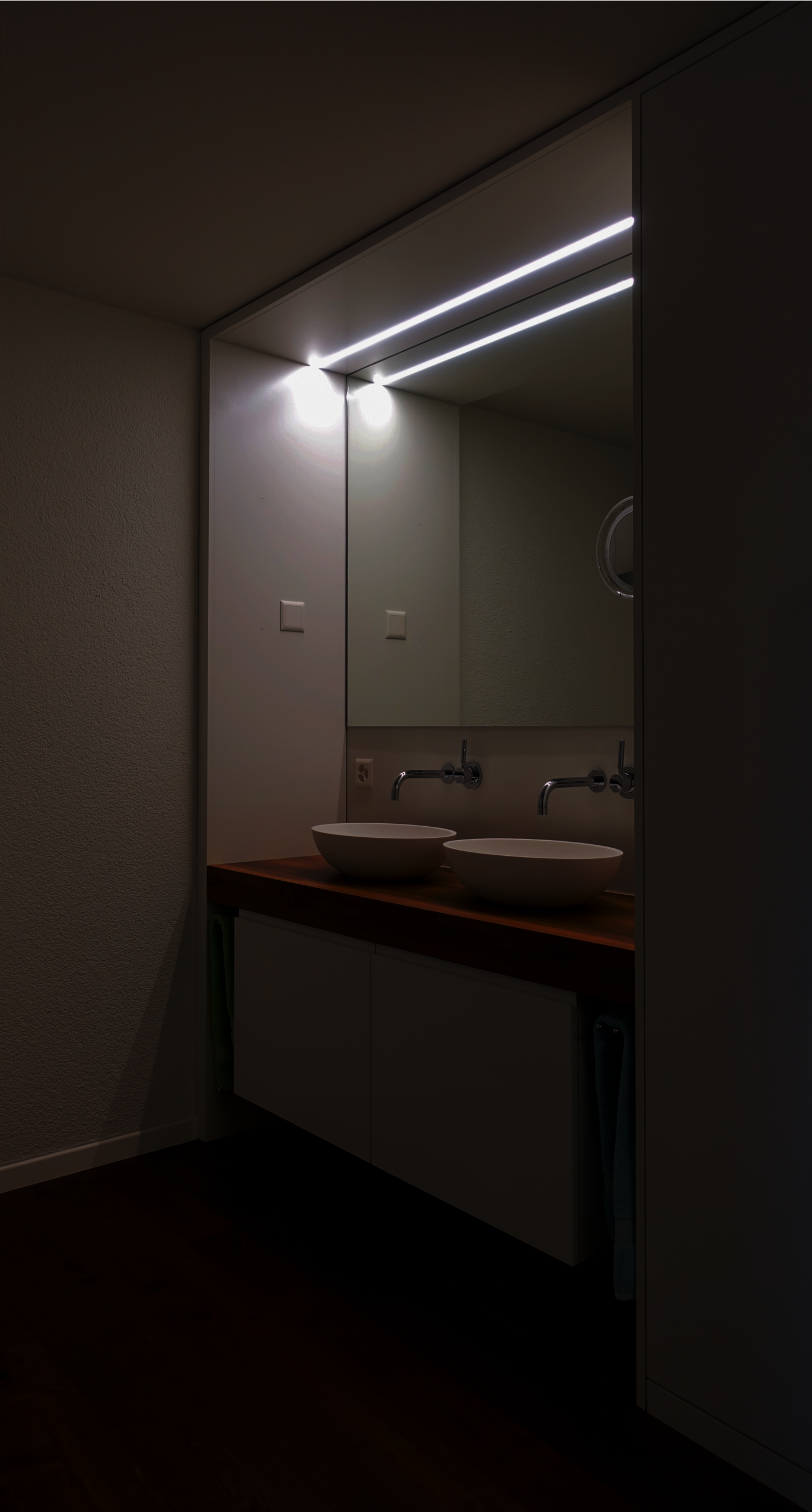 Durch die Umgestaltung einer der zwei Nasszellen konnte diese neu dem Hauptschlafzimmer zugeordnet werden. Die Abfolge von Schlafbereich, Ankleide und Nassbereich orientiert sich an modernen Hotellösungen.